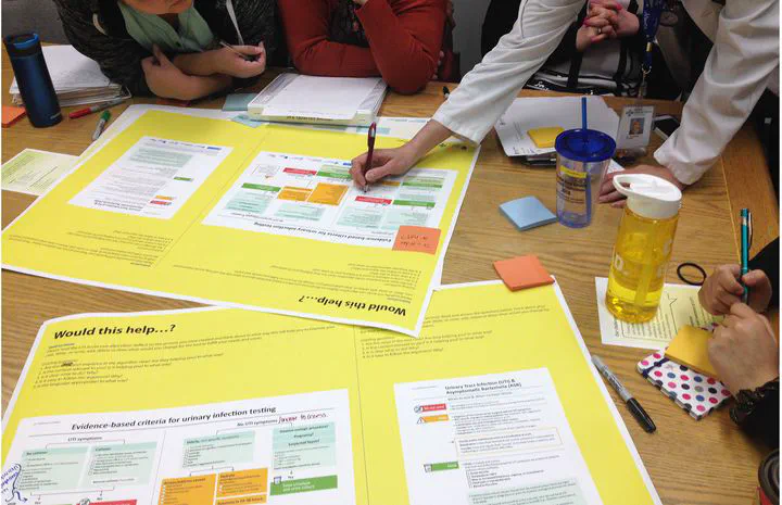 Our team was recruited to explore the beliefs and processes followed by physicians and nurses regarding positive urine tests and the routine ordering of these tests. As we engaged with users we found a knowledge gap in understanding when to test the urine and that some tests were being sent “just in case”.